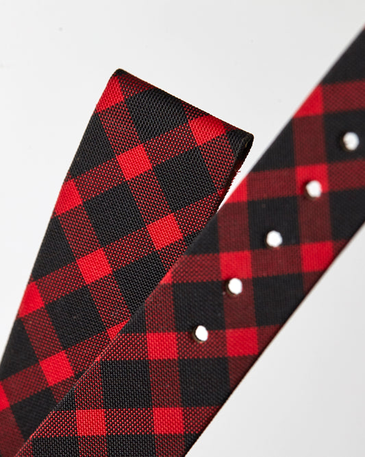 Universal Geneve 18mm x 13mm Vintage Black and Red Plaid Fabric Strap