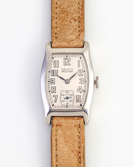 Gruen Tonneau Manual Wind 14k white gold Vintage Wristwatch