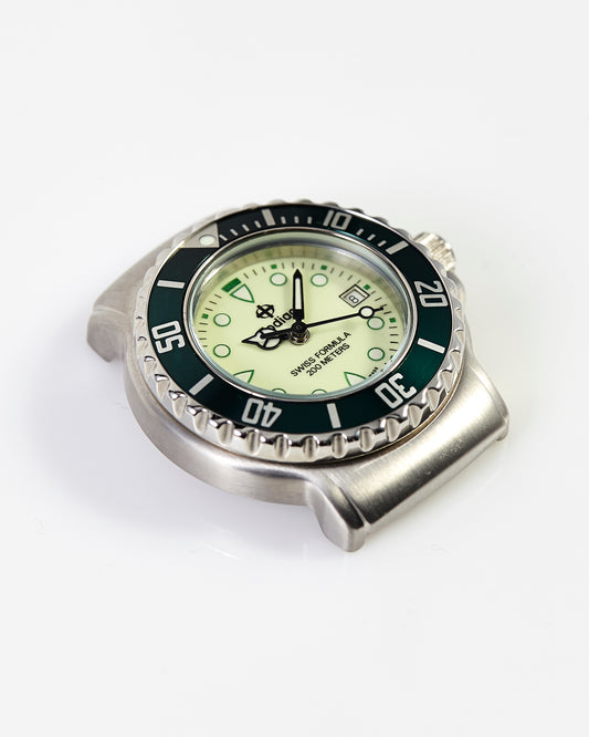 Zodiac Rare NOS 36mm Professional 200m Diving Watch Head White Dial Green Bezel